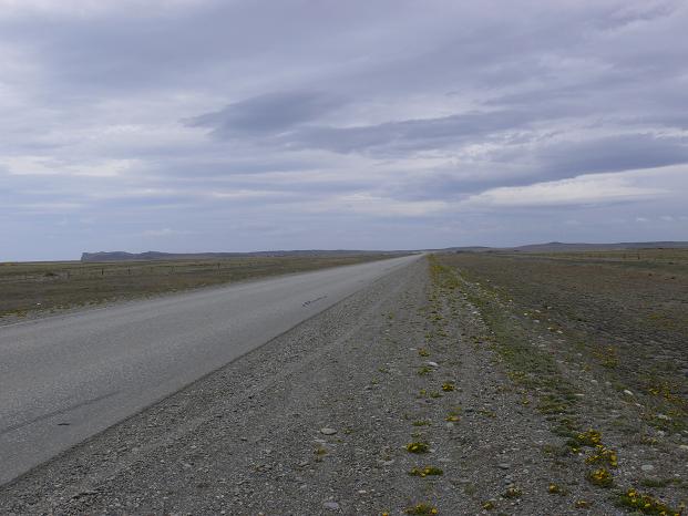 Meist mit Rückenwind legte ich dann die ersten 40 km auf Feuerland auf einer feinen Betonpiste zurück. Als ich nach Cerro Sombrero abzweigte, konnte ich aber leider schon das „Fin de Pavimiento“-Schild sehen...