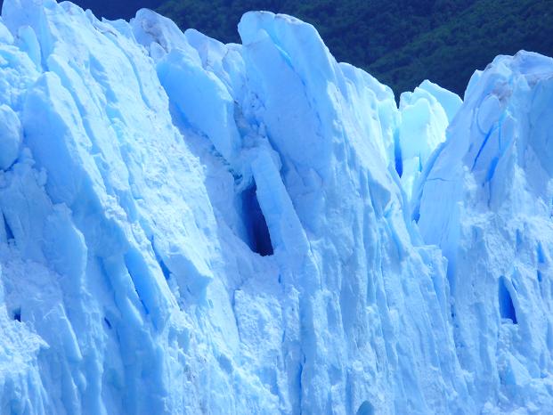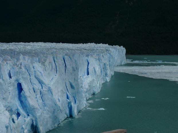 Es ging dann weiter zum Spegazzini-Gletscher, welcher mit einer Front von bis zu 130 Meter Höhe aus dem Wasser ragt – gewaltig! Deutlich waren aber die Spuren zu erkennen, dass der Gletscher auf dem Rückzug ist: Zwischen Eis und Vegetation gab es einen breiten Streifen nackten Fels.