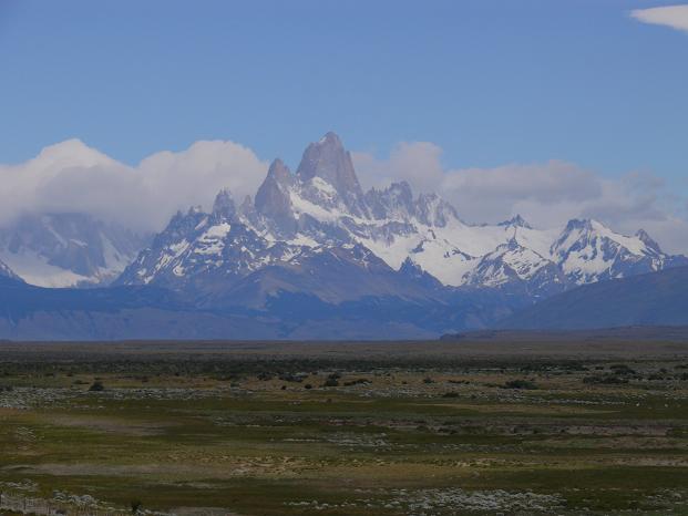 Ab Kilometer 30 konnte ich dann das Massiv vom Monte Fitz Roy erblicken. Als ich die Felswände in die Höhe ragen sah, war mir auch klar, warum die Reiseführer davon schwärmen…