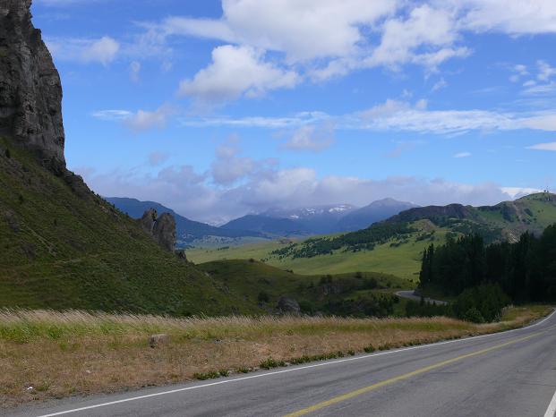 Nachdem ich im Tal des Río Murta teilweise noch gegen den Wind anzukämpfen hatte, wurde ich von diesem ab der 2. Hälfte vom Anstieg unterstützt – und ab dem Plateau konnte ich auch auf einem superharten, glatten und staubfreien Belag rollen. Wahrscheinlich ist dies der Abschnitt, der mit Lavaascha vom Vulkan Hudson präpariert wurde. Dieser brach zum letzten Mal 1991 aus.