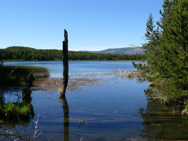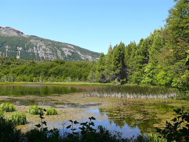 Obwohl ich einige Stopps einlegte, um die Natur und den Blick auf Coyhaique festzuhalten, Vögel zu beobachten und die Stimmung in diesem Waldgebiet zu geniessen (an der Laguna Verde standen die Nadelbäume einmal auch so dicht, dass gar kein Sonnenlicht auf den Boden durchdringt und ich eine Weile warten musste, bis sich meine Augen an die Dunkelheit angepasst hatten!), hatte ich nach etwas mehr als eineinhalb Stunden schon fast die Hälfte der Runde erreicht und stand an der Verzweigung zur Zusatzschlaufe. Ich überlegte kurz, und nahm dann Punkt 12 Uhr den längeren Weg unter die Füsse. Während der ausserordentlich gut markierte Pfad (gut, er ist nicht markiert, aber am Boden deutlich sichtbar) bisher sanft anstieg oder flach war, ging es nun steil den Hang hinauf.