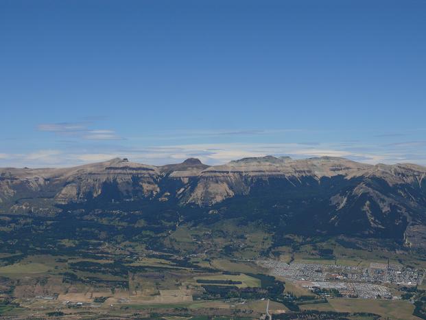 Ich lief dann doch eine Anhöhe hinauf, um ein Gipfelfoto zu schiessen – mit einem anderen, höheren Gipfel im Hintergrund nur ein paar hundert Meter entfernt... In dieser kahlen Landschaft fühlte ich mich eher in einer Wüste als auf einem über 1‘300 Meter hohen Berg – zumal es auch ziemlich warm war und der Wind ungewöhnlich schwach wehte. Beim Aufstieg war ich die ganze Zeit schwitzend im Windschatten, und auch auf dem Gipfel wehte nur eine sanfte Brise, dank der ich dann wenigstens wieder in trockenen Kleidern steckte.