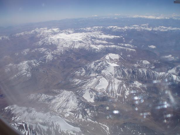 Ich ging dann gleich durch die Passkontrolle, suchte Gate 12, ging shoppen, ass noch etwas kleines und begann dann, ein Buch zu lesen. Um 13 Uhr ging es ins Flugzeug, und wenig später in die Luft. Nach einer verwirrenden Kurvenkombination ging es dann über die Anden. Dank dem wolkenlosen Himmel gab es auch einen schönen Blick hinunter auf die Schneegipfel. Bald gab es aber dichte Wolken, und ich widmete mich wieder mehr dem Buch.