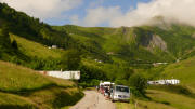 Geschlafen habe ich auf der neuen Luftmatratze ganz gut. Diese habe ich gestern Abend noch im Intermarché im Nachbardorf für 20 Euro erworben. So nahm ich dann gut erholt und mit leichtem Gepäck (nur Essen, Ersatzeile und warme Bekleidung / Regenkleider) die heutige Etappe in Angriff, welche im Wesentlichen einen Teil der heutigen Tour de France-Etappe beinhaltet. Da ich 2 Nächte auf dem Zeltplatz gebucht habe, kann ich das Zelt und einen Teil der Ausrüstung mal stehen lassen. Also nahm ich zuerst den Col du Glandon in Angriff - und kriegte gleich mal einen Schock: Statt auf einer erhofften Höhe von ca. 1000 Metern über Meer stieg ich bei weniger als 700 Metern in den Pass hinein. Also noch ein paar Höhenmeter mehr als gedacht... Locker fuhr ich die Steigung hoch, und man merkt schon, wenn da etwa 10 kg weniger Gepäck auf dem Fahrrad sind. Als ich da an den vielen Campern vorbeifuhr, die die TdF erwarteten, bereute ich es natürlich schon ein wenig, nicht das gesamte Gepäck aufgeladen zu haben. Das hätte sicherlich den einen oder anderen noch mehr ins Erstaunen gebracht als so mit "nur" zwei kleinen Fahrradtaschen. Als dann aber die letzten Kilometer vom Col du Glandon anbrachen und es nur noch im zweistelligen Prozentbereich aufwärts ging, war ich dann aber doch froh, nicht alles hochschleppen zu müssen! Nach diesen Strapazen kamen mir dann die restlichen 2.5 km zum Col de la Croix de Fer fast flach vor... Was hier an so einer Tour de France-Etappe abgeht, ist aber einfach unglaublich! Damit meine ich aber nicht nur die Zuschauer, die da schon frühmorgens der Dinge harren, sondern auch die Streckensicherung. Ich erreichte um 11 Uhr den Gipfel vom Col de la Croix de Fer, also etwa 5 Stunden vor dem ersten Profi. Aber auf dem Weg dorthin überholten mich Dutzende Motorräder und Autos der Gendarmerie, und entlang der Strecke waren die Polizisten auch an jedem erdenklichen Ort postiert. Da frage ich mich: Was machen die eigentlich alle den Rest vom Jahr, wenn nicht Tour de France ist? So fuhr ich dann hinunter ins Tal nach St-Jean-de-Maurienne, wobei ich den Col de Mollard rechts liegen liess. Nach einem längeren Gegenanstieg konnte ich mich dann endgültig ins Tal stürzen, wobei diesen Teil die Profis dann wieder bergwärts Richtung La Toussuire befuhren. Dann ging es wie gestern im Gegenwind Richtung La Chambre. Allerdings bog ich da etwas vorher ab und fuhr nach St-Etienne-de-Cuines an den Fuss vom Col du Glandon. Dort postierte ich mich bei Beginn der Bergwertung und wartete den TdF-Tross ab. Ich war gerade rechtzeitig zu Beginn der Werbekarawane eingetroffen, welche dann nach halb zwei Uhr durchs Dorf rollte. Dabei amüsierte ich mich vor allem über plötzliche Agilität von älteren Leuten, wenn sie ein Give-Away vor Augen hatten... Nächste Überraschung: Werbekarawane vorbei, Leute weg! Wo sind die alle hin? Nach Hause fernsehen? Oder ihre Schätze in Sicherheit bringen? Jedenfalls kamen sie wieder zurück, kurz bevor die ersten Profis vorbeirauschten... Und ein Vorbeirauschen war das tatsächlich: im Nu waren die Spitzenreiter vorbei, keine Minute später die ersten Verfolger, mit ein bisschen mehr Rückstand das Feld, und knapp 10 Minuten hinter der Spitze die Letzten. Wobei ich auch denen nicht mehr als 30 Meter hätte folgen können... Ich ging dann zurück auf den Campingplatz, wo ich dann noch den Schluss der Etappe auf Grossleinwand verfolgte. Tja, als die das Ziel endlich erreicht haben, hatte ich schon lange geduscht... Nachdem ich gestern im Restaurant vom Campingplatz eine geschlagene Stunde! auf das Essen warten musste (und sie hatten nur Bestellungen von 2 Menus, der andere musste noch länger hungern), gönnte ich mir heute wieder eine grosse Portion Spaghetti auf meinem Kocher. Bei der Saucenmenge berufe ich mich natürlich auf das "ca." in "ca. 4 Personen"! |